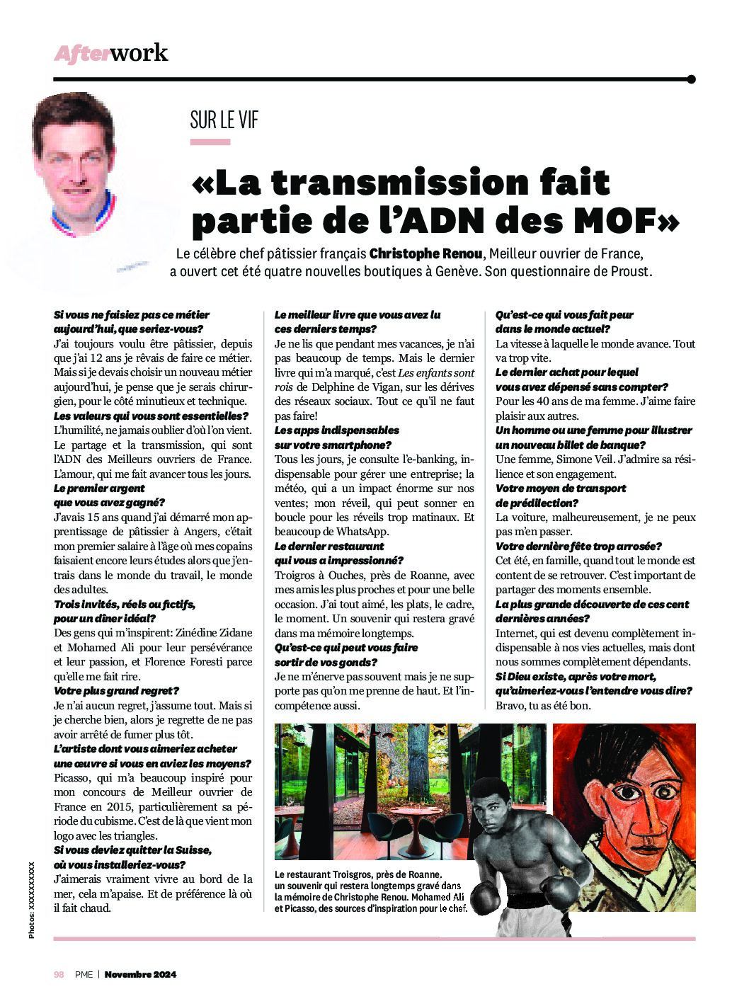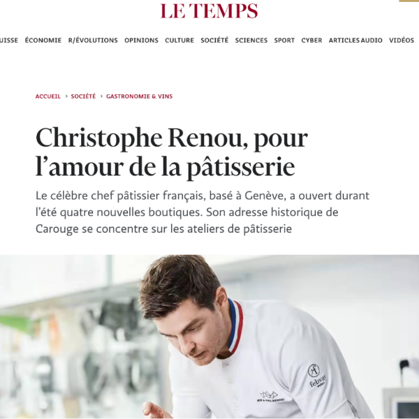 On parle de nous !LE SAUPHINE - Septembre en OrLire l'articleTRIBUNE DE GENEVE - Pastry WeekLire l'articleELLE SUISSE - Tout ce qui buzze !Lire l'articlePME MAGAZINE - Sur le VifLire l'articleGAULT & MILLAU - Octobre RoseLire l'articleLEMAN BLEU - Rallye du ChocolatLire l'articlePRESTIGE - Christophe RenouLire l'articleFEMINA - Week-End à CarougeLire l'articleELLE - Nouvelle boutique aux Eaux VivesLire l'articleLE TEMPS - L'amour de la pâtisserieLire l'articleBILAN - Le "quatre-heures" bonheur !Lire l'articleTDG - Paris-brest: retour en grâce d’un dessert de légendeLire l'articleBilan.ch - L'horloge en chocolat de Christophe Renou Lire l'articleCulture RP - Top 10 des influenceurs tout en chocolatLire l'articlePique Assiette- Les chocolats de PâquesLire l'articleGault & Millau - Mr & Mrs Renou la passion du partageLire l'articleMacaronsandmayhen - Mr & Mrs RenouLire l'articleGenève Les Portes - Cook'n Show, des automnales très chocolat !Lire l'article24 heures - Dans le labo de Mr RenouLire l'articlePME Magazine - Les MOF à la conquête de la SuisseLire l'articleLa tribune de GenèveLire l'articleOne FM RadioLire l'articleLe Monde EconomiqueLire l'articleMarie Claire SuisseLire l'articleWhat's the waveLire l'articleLes mordus du ChocolatLire l'articleLe MatinLire l'articleGeneva DiscoveryLire l'articleGastro JournalLire l'articleFriday 20 minutesLire l'articleVojood MediaLire l'articleSimple TasteLire l'articleLe petit chouLire l'articleJV CuisineLire l'articleJj SphèreLire l'articleChoisis ton restoLire l'articleMes chemins de la gourmandiseLire l'articleAttablaLire l'articleGilles PudlowskiLire l'articleElle DecorationLire l'articleLe Journal du pâtissierLire l'articleLire l'article